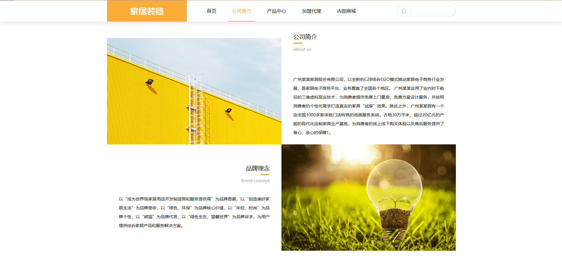 广州某某家居股份有限公司,以全新的C2B结合O2O模式推动家居电子商务行业发展,是家居电子商务平台,业务覆盖了全国各个地区。 广州某某应用了业内时下前沿的三维虚拟现实技术,为消费者提供免费上门量房、免费方案设计服务,并按照消费者的个性化需求打造真实的家具“试穿”效果。除此之外,广州某某拥有一个由全国1000多家体验门店构筑的地面服务系统,占地30万平米、超过20亿元的产能的现代化定制家具生产基地,为消费者的线上线下购买体验以及售后服务提供了省心、放心的保障。